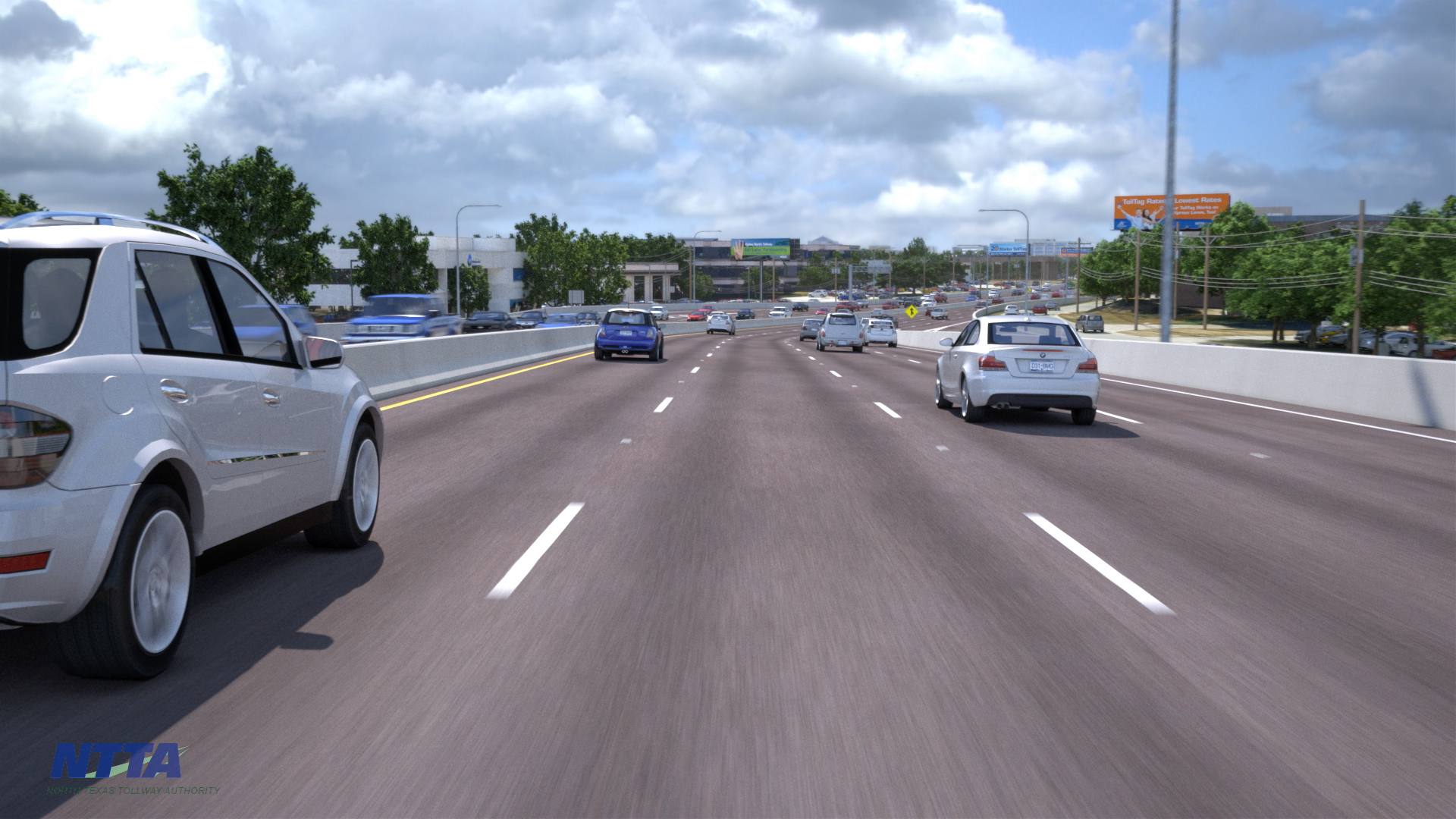 An animation from a driver’s perspective shows the Dallas North Tollway lane expansion.